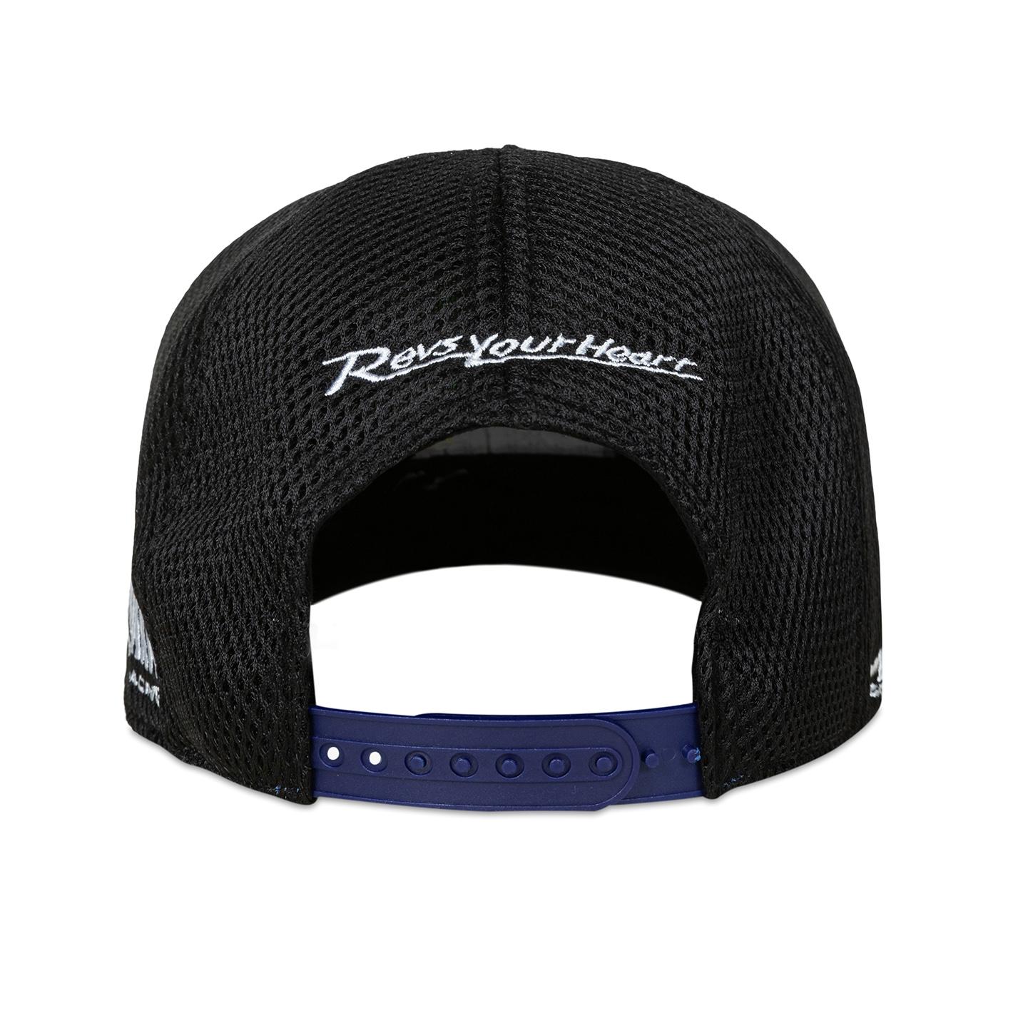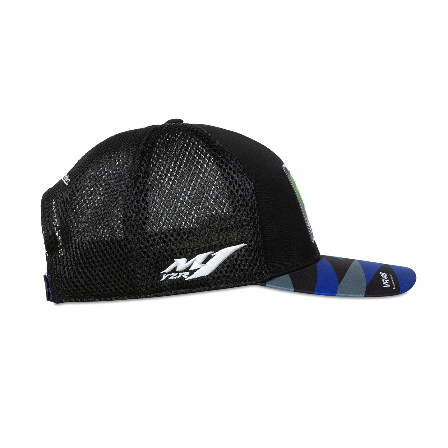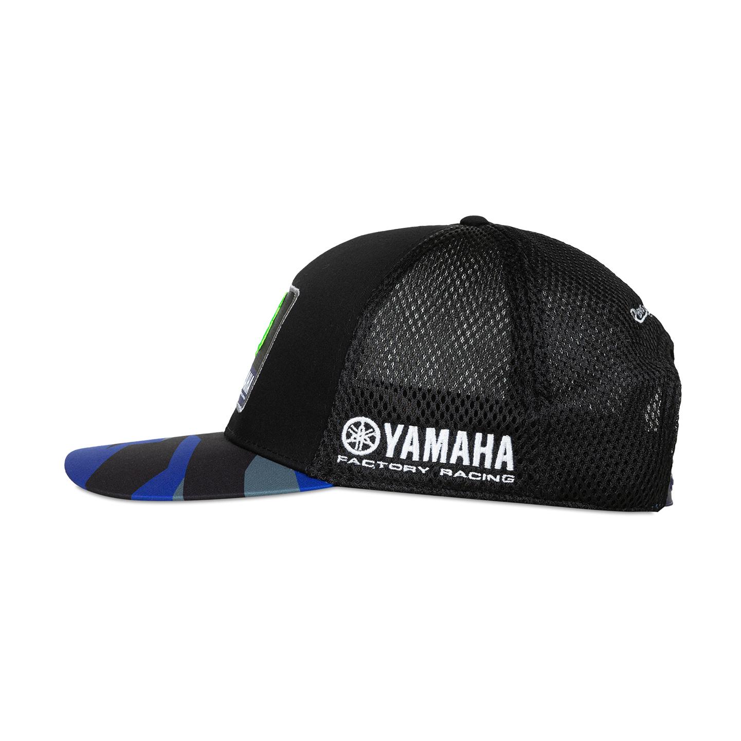 The Monster Energy Yamaha MotoGP team replica cap for adults offers comfort and function. Made from a 50/50 cotton and polyester blend in Paddock Black with a striking blue and grey camo pattern inspired directly by the 2023 M1 motorcycle livery, this cap is a comfortable unisex fit with an adjustable blue strap. To completely finish off its eye-catching look this cap features printed and embroidered Yamaha Factory Racing, M1, Monster Energy and sponsor logos.